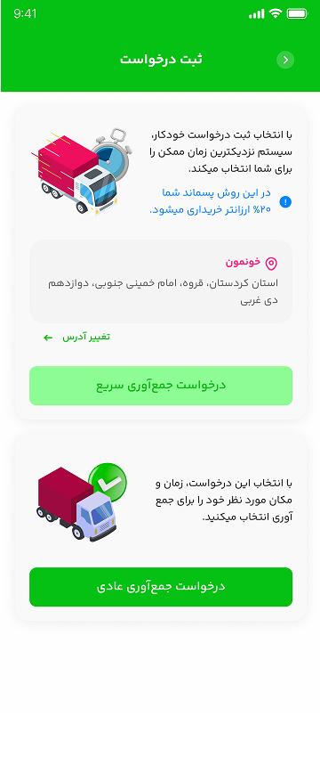 با ثبت درخواست جمع آوری پسماند به چرخه محیط زیست کمک کنید.