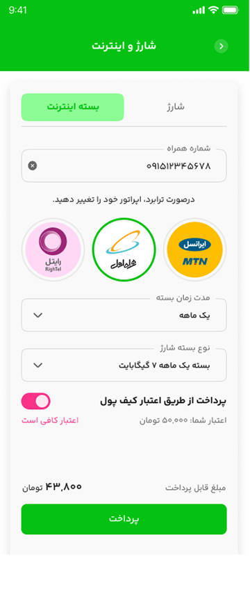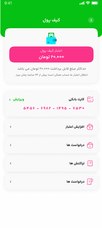 - مشاهده کیف پول، لیست تراکنش ها و اعتبارات کسب شده