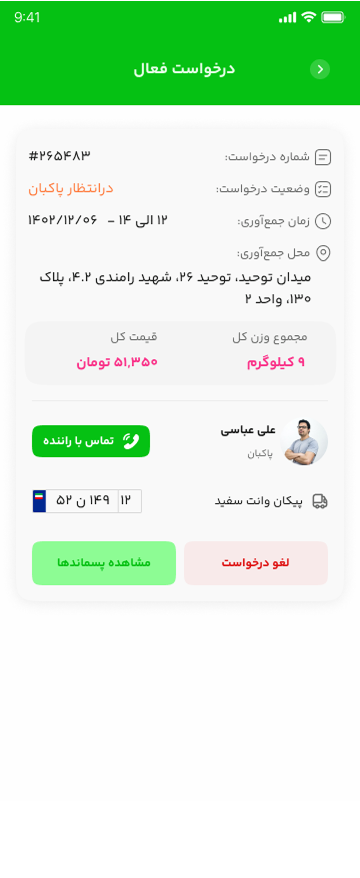 - مشاهده جزییات درخواست ( نوع و وزن پسماند) برای پاکبان